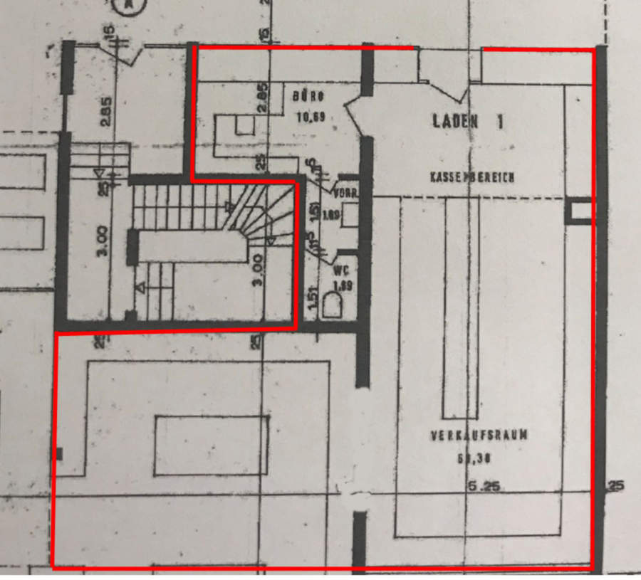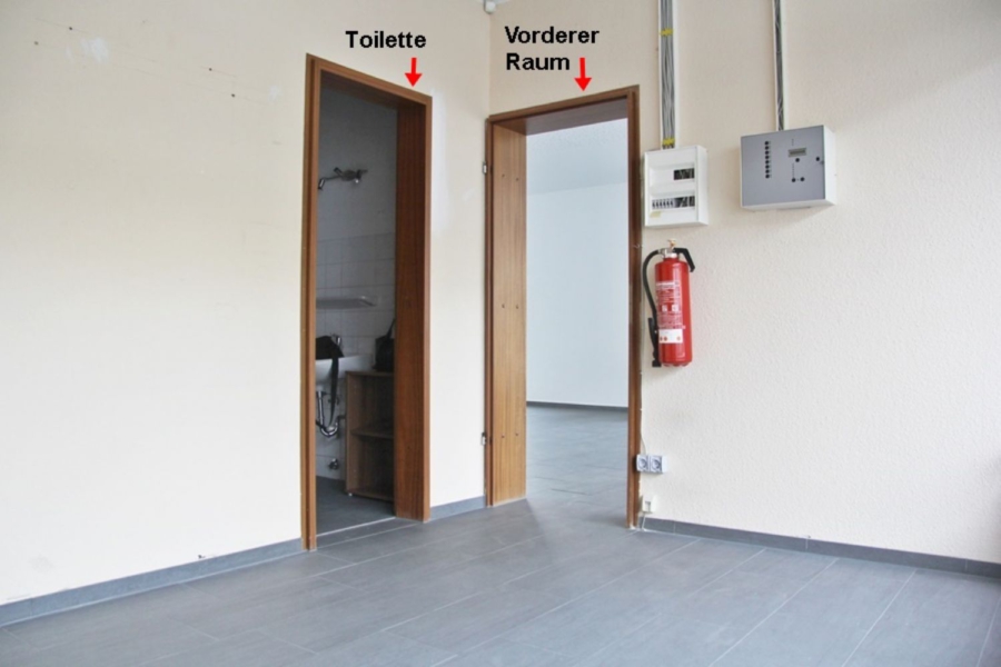 Betreten Sie das Ladengeschäft von der Straßenseite werden Sie im vorderen Bereich des Ladens begrüßt. Im hinteren Bereich haben Sie eine weitere Fläche, die vom Eingang aus nicht sichtbar ist. Natürlich wurde auch an eine Toilette in diesem vorderen Bereich gedacht. Links neben dem Eingang ist ein ca. 15 m² großer abschließbarer Raum mit einer weiteren Toilette angeordnet. Dieser Raum ist zusätzlich über das Treppenhaus zugänglich.