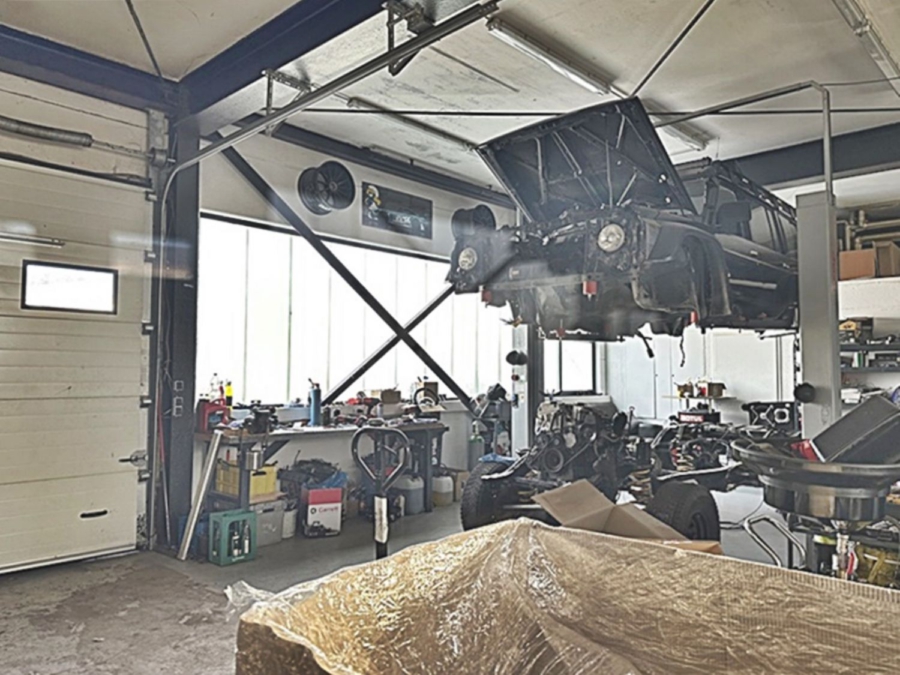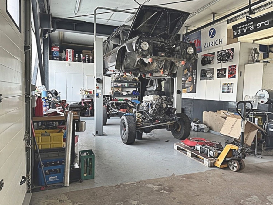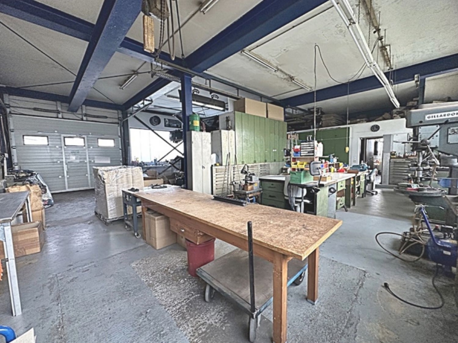 Das Gebäude mit einer Grundfläche von 192 m² wurde 1987 auf einem 349 m² großem Grundstück gebaut. Die ca. 155 m² große Halle im Erdgeschoss hat eine Höhe von 4,20 Metern und ist bequem über ein Sektionaltor mit Tür und einer Eingangstür auf der Ostseite des Gebäudes zugänglich. Die Halle ist mit Starkstrom, Druckluft ausgestattet.