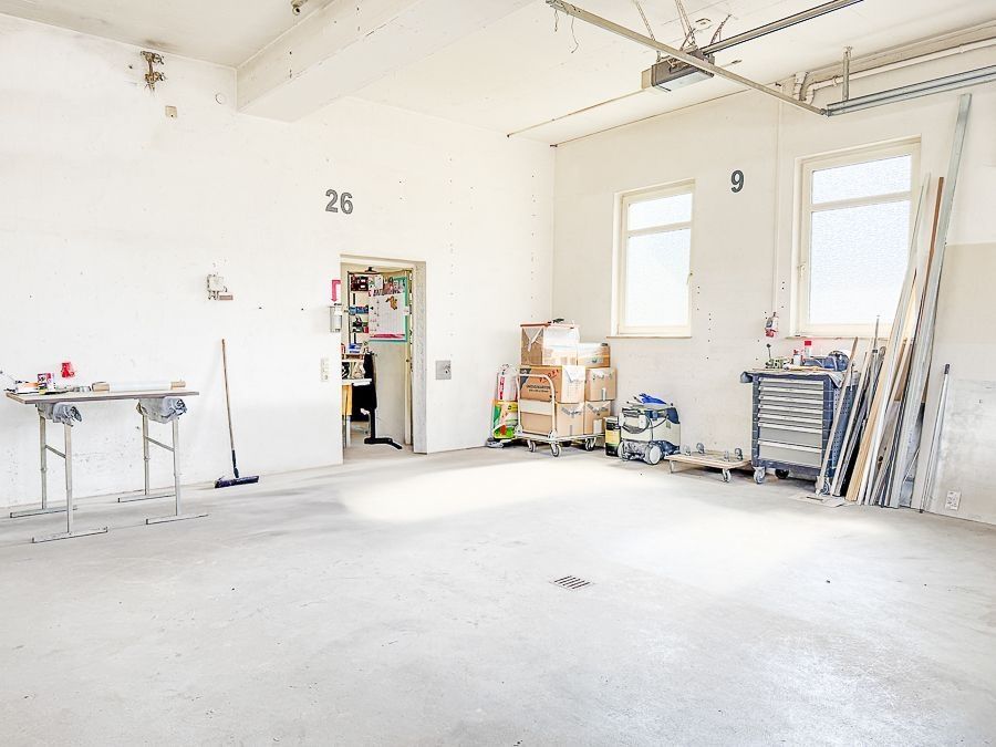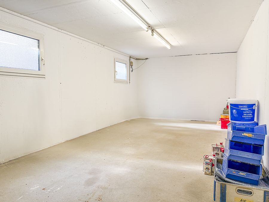 Im Erdgeschoss befindet sich die Gewerbeeinheit, welche über 2 Etagen über insgesamt 141,13 m² Nutzfläche verfügt. Die Garage mit Werkstatt umfasst rund 89,15 m² und ist über zwei funkgesteuerte Rolltore (jeweils 3 m breit und 3 m hoch), eine Seitentür oder das Treppenhaus zugänglich. Die Halle mit ca. 50 m² ist mit einem Drehstromanschluss ausgestattet und führt durch eine Brandschutztür in den hinteren Bereich, mit weiterer Nutzfläche, einem Tageslicht-WC mit Handwaschbecken sowie zusätzlichen Anschlüssen für Wasser und Drehstrom. Die Deckenhöhe von 3,50 m schafft ideale Nutzungsbedingungen.