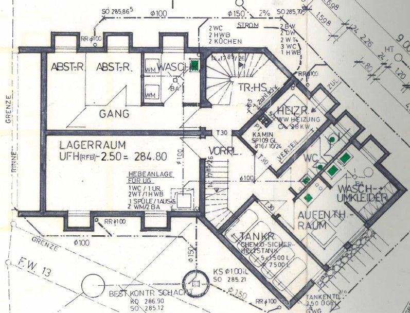 - Gewerbeeinheit mit jetzt 150,28 m², da der ehem. Tankraum mit 9,15 m² dazugekommen ist
