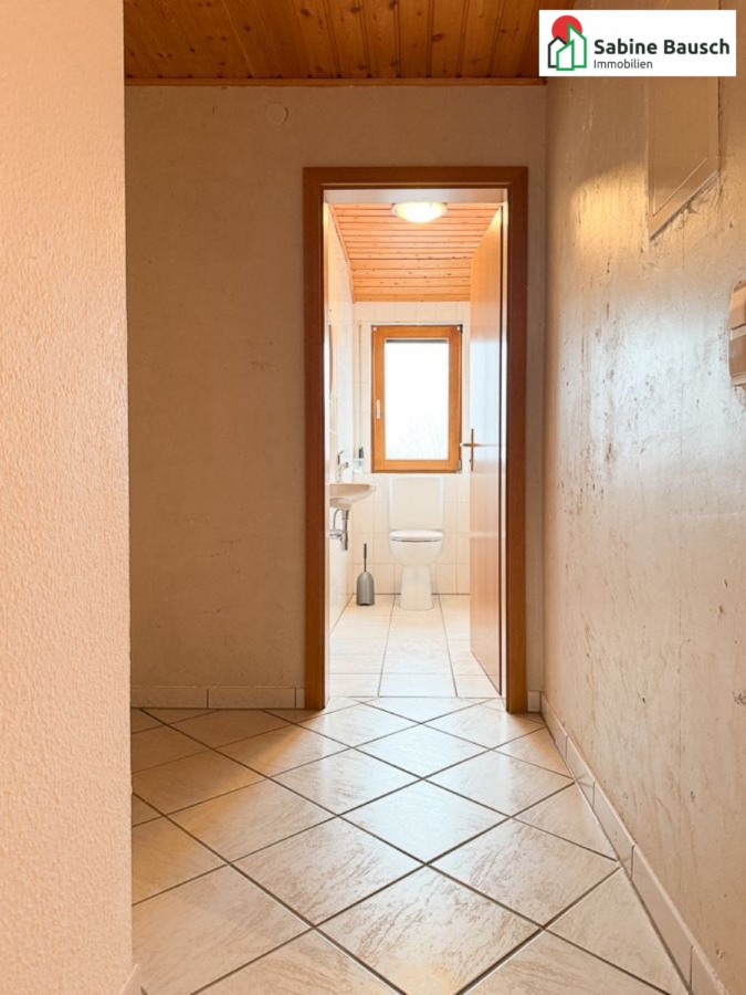 - Gäste-WC: Tageslicht-WC hinter der Garderobe