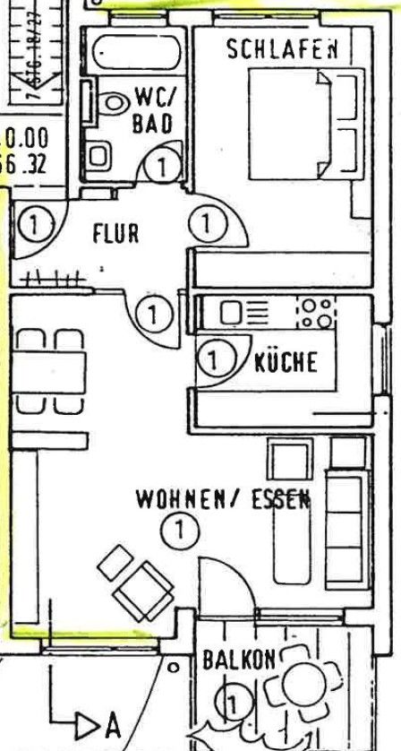 Mit einer Wohnfläche von 59,41 m² bietet die Wohnung eine durchdachte Raumaufteilung. Die Diele führt linker Hand in das helle Tageslichtbad mit Badewanne, WC und Waschbecken. Am Ende des Flures liegt das ruhig gelegene Schlafzimmer. Rechter Hand öffnet sich der lichtdurchflutete Wohn- und Essbereich. Die Küche mit Einbaumöbeln und Elektrogeräten ist harmonisch an den Essbereich angebunden. Vom Wohnbereich aus gelangen Sie auf den überdachten Balkon mit Strom- und Lichtanschluss.